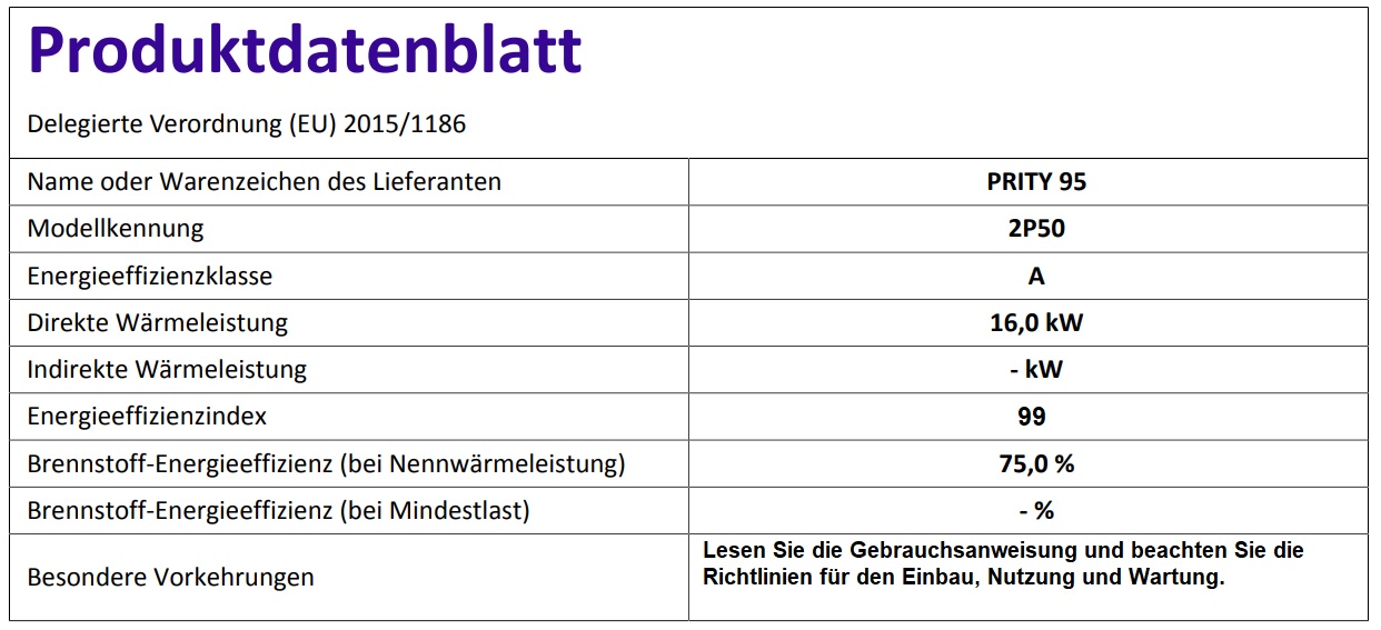 - Zugelassene Brennstoffe: Holz und Holzbriketts (Kohle wurde nicht geprüft)