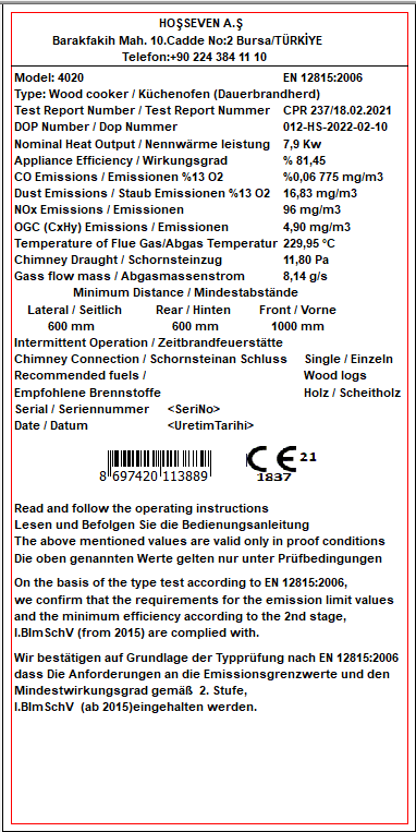 Ausgestattet mit der Energieeffizienzklasse A+ und einer Effizienz von 81,45 %, setzt der 4020 Maßstäbe in puncto Energieeffizienz. Er erfüllt die Anforderungen der BImSchV Stufe 2 und ist nach EN 12815 zertifiziert, was seine umweltfreundliche Performance unterstreicht.