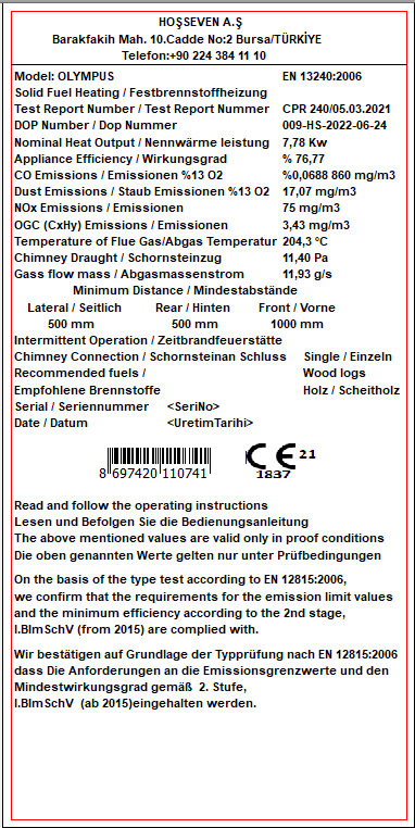 Mit einer Nennwärmeleistung von 7,78 kW und einem Raumheizvermögen von 223 m³ ist der Olympus ideal, um mittelgroße Räume effizient zu beheizen. Seine Energieeffizienzklasse A und eine Effizienz von 76,77 % garantieren eine umweltfreundliche und kosteneffektive Wärmequelle. Zudem ist der Ofen nach BImSchV Stufe 2 und EN 13240 zertifiziert, was seine Qualität und Sicherheitsstandards bestätigt.