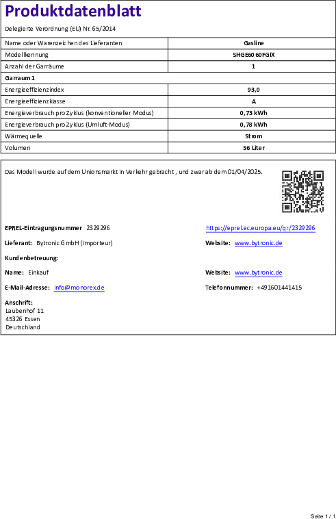 Backofen-Nutzvolumen: 56 Liter