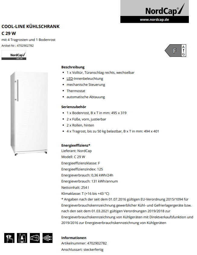 Nordcap COOL-LINE Kühlschrank C 29 W