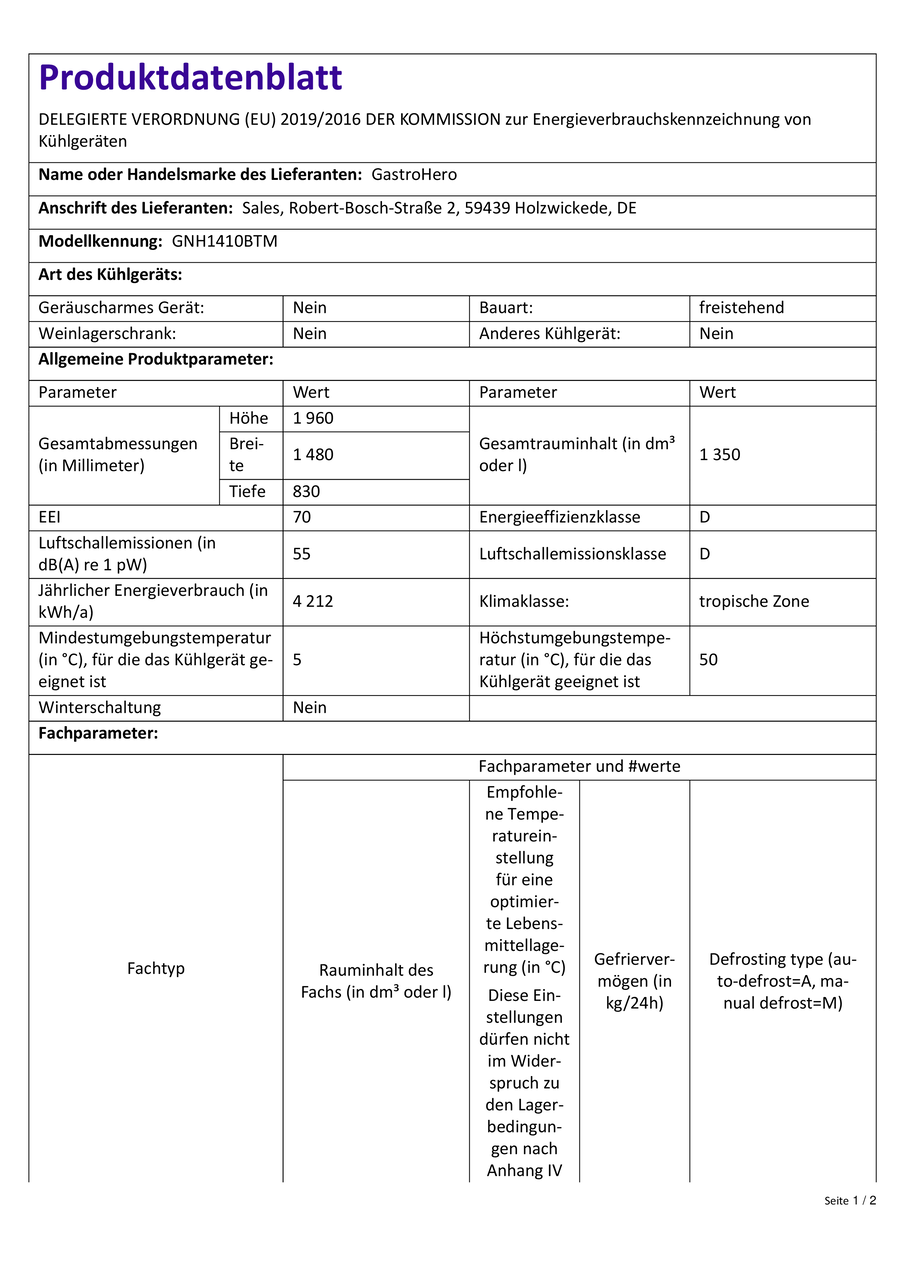 GastroHero Tiefkühlschrank ECO 1300 GN 2/1 Monoblock